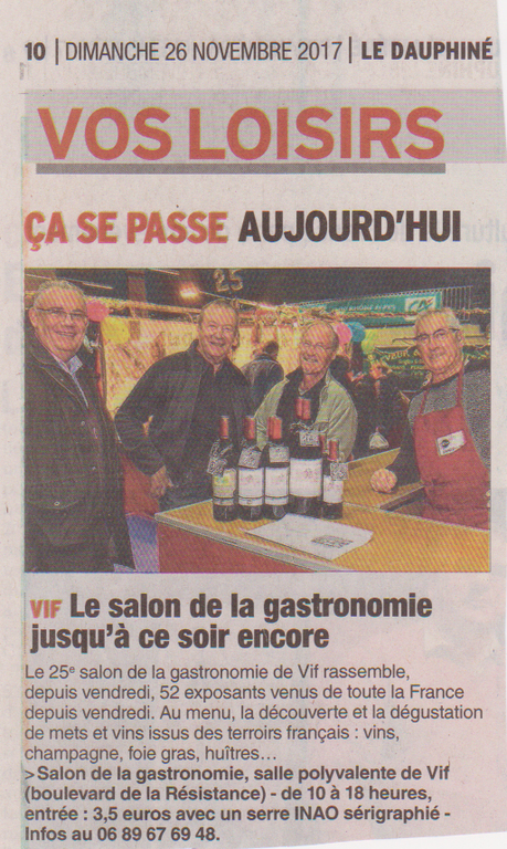 Cette année dans le DL du dimanche 26 novembre, nous avions 2 articles sur le SALON DE LA GASTRONOMIE