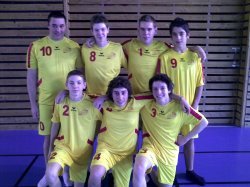 Voici l’équipe : Alexandre, Arthur, Guillaume, Jérémie, Jordan, Maxime (sur le banc) et Yann ( j’ai mis les prénoms par ordre alphabétique comme ça pas de jaloux ) .